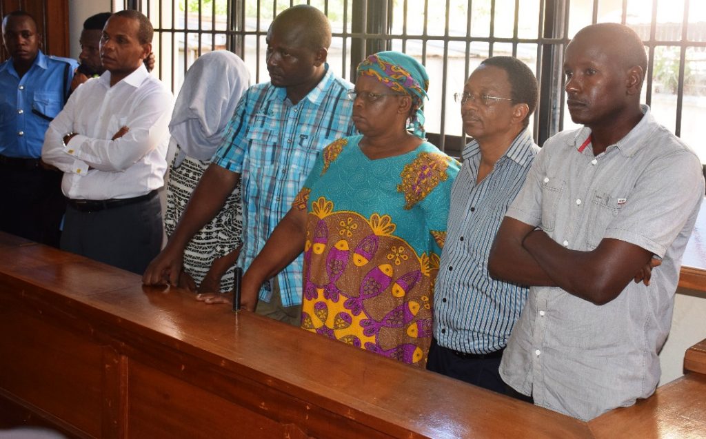 Former assistant minister and Garsen MP Danson Mungatana with other co-accused before a Malindi Law Court facing charges of graft
