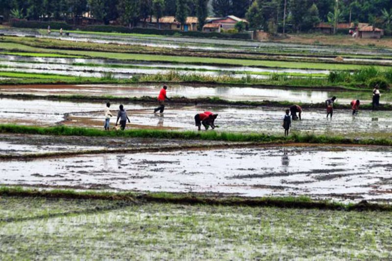 Rice farmers going about their business at the Tana Delta using irrigation before the collapse of the project after River Tana changed its course in 2016