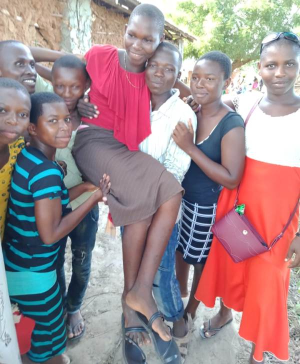 Silvia Rehema (in red blouse), 16, being celebrated by her colleagues after posting 406 marks from the just-released KCPE results Image: Mwakwaya Raymond Mwakwaya