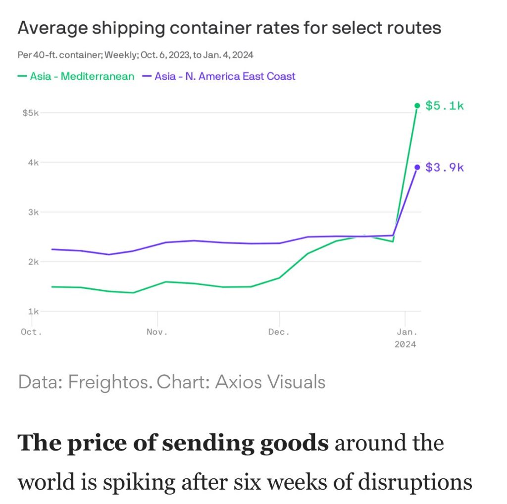 Shipping reports indicate that the disruption to Middle Eastern supply after the recent Red Sea attacks to merchant ships drove oil prices higher in the first trading session of this year.