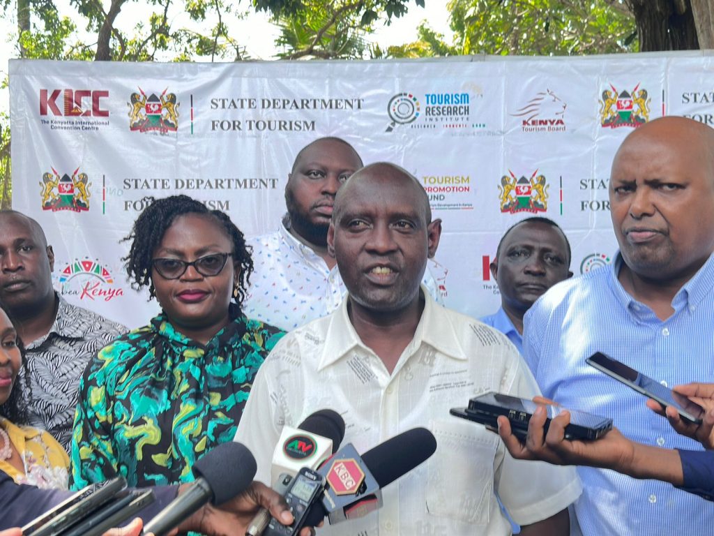 Tourism principal secretary John Ololtuaa during a media briefing in Mombasa on the sidelines of state department for tourism stakeholders workshop. (Photo By Harrison Kivisu)