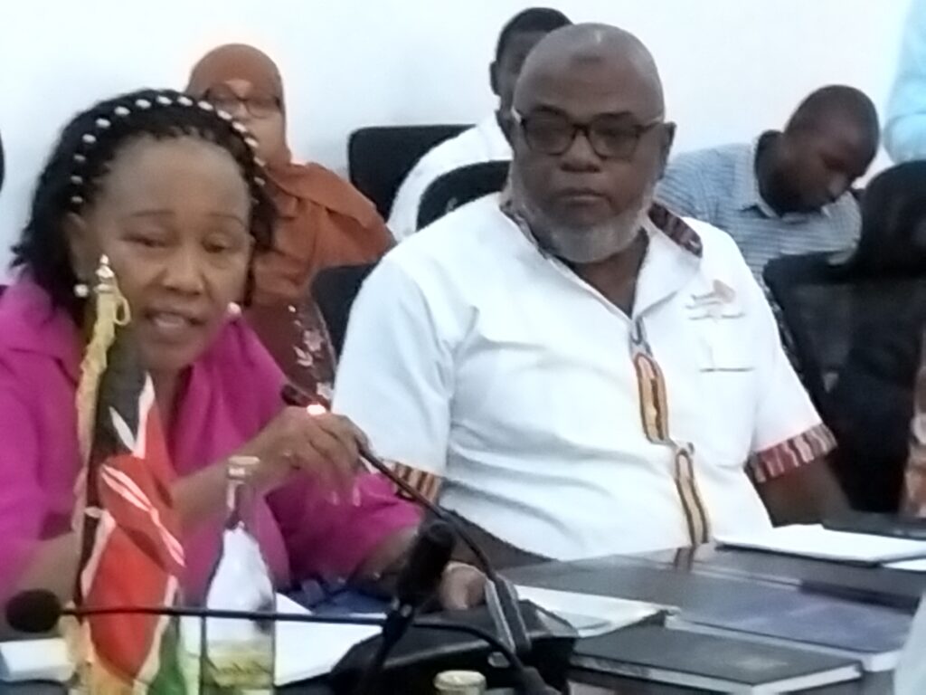 Senate Committee on Education Chair Betty Montent and Mombasa County Senator Mohammed Faki during the special sitting in Mombasa.(Photo By Mwakwaya Raymond)