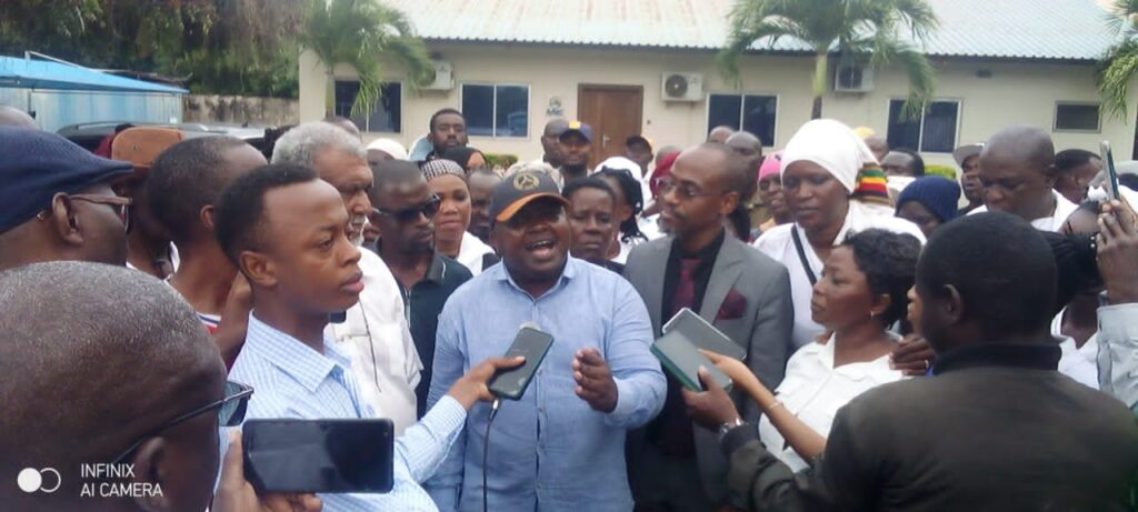Shanzu Ward MCA Allen Katana aka 1GB addressing demonstrators at water offices in Nyali. (Photo By Mwakwaya Raymond)