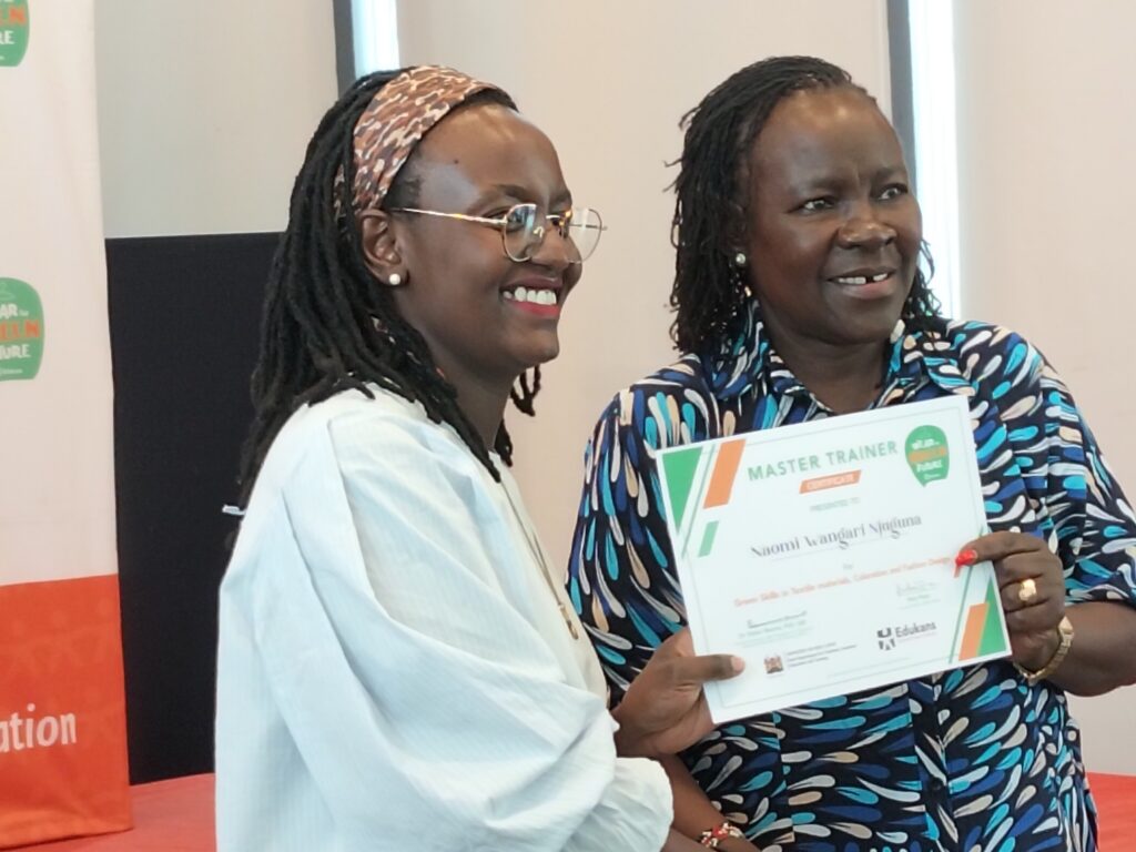 The 20 Master Trainers, who specialized in areas including textile materials, coloration, and eco-friendly fashion design, were presented with certificates of completion by Dr. Muoria, marking a significant milestone in Kenya’s green skills development journey.