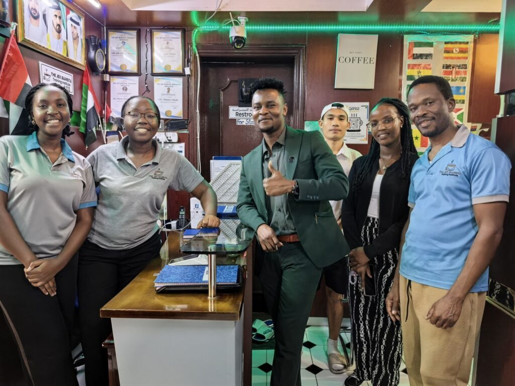 His trainees reach him through TikTok, where they connect for both online and physical classes at his college in Dubai. His passion for being a barista is earning him a living while at the same time creating jobs for others.