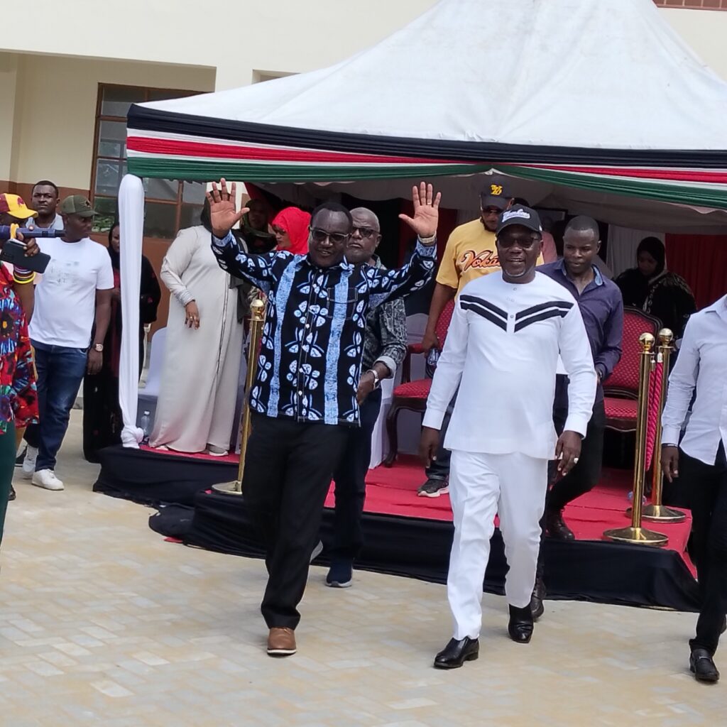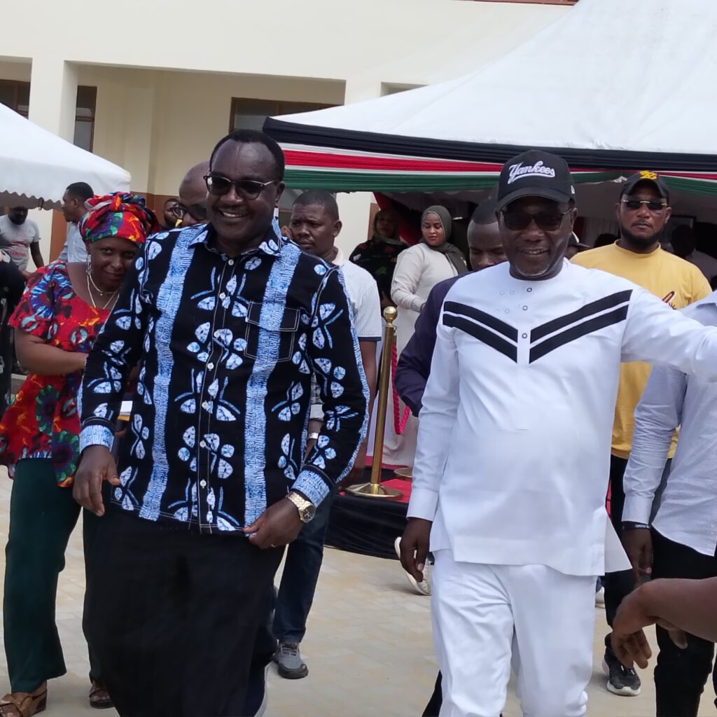 Education cabinet secretary Julius Ogamba and Kisauni MP Rashid Bedzimba leave Shanzu Senior School after opening it. (Photo By Mwakwaya Raymond)