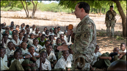 Lamu County, Kenya: The Kenya Defence Forces (KDF) operating under Operation Amani Boni (OAB) in collaboration with United States Civil Affairs officers from Camp Simba, conducted a Civil–Military Cooperation (CIMIC) outreach at Mokowe Arid Mixed Day and Boarding School in Lamu County.