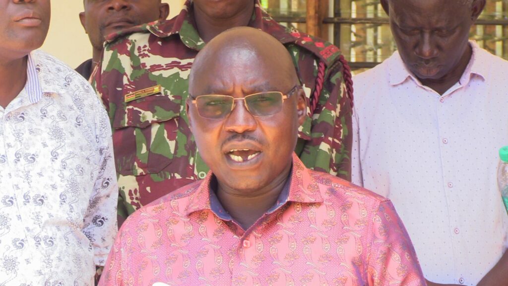 Magarini Sub-County County Commissioner Michael Ololtua address journalists in Magarini. (Photo by Robby Ngoba)